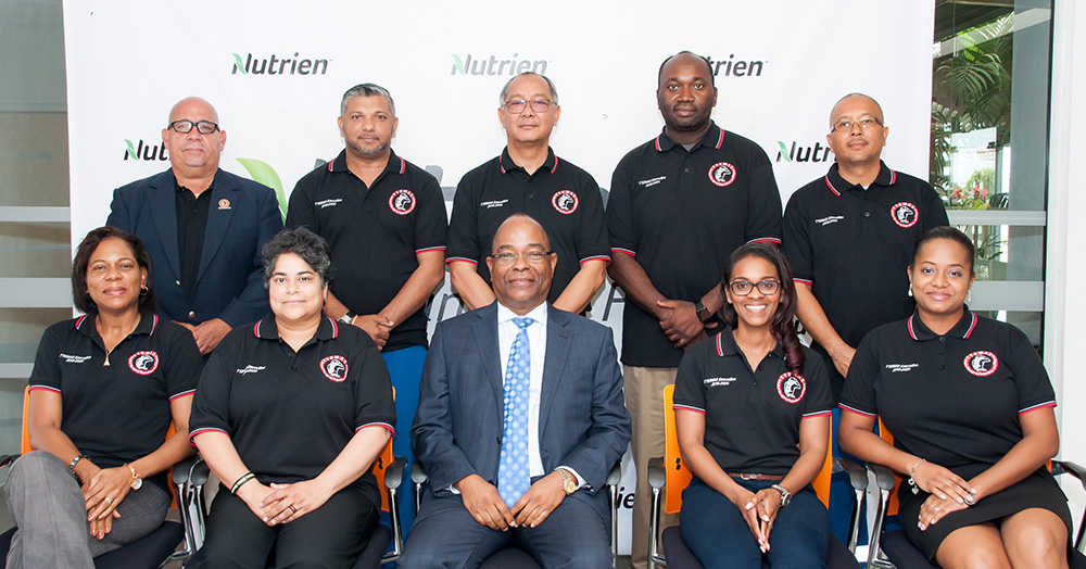 From Left front: Giselle Grannum Modeste (Emergency Response Co-ordinator), Antonia Lucky (President), Mr. Ian E. Welch (Managing Director Nutrien), Keisha Barcellos (Treasurer), Delicia Hernandez (Public Relations Officer)